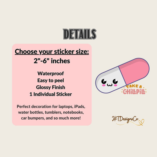 Kawaii Take a Chill Pill Glossy Vinyl Sticker Decal