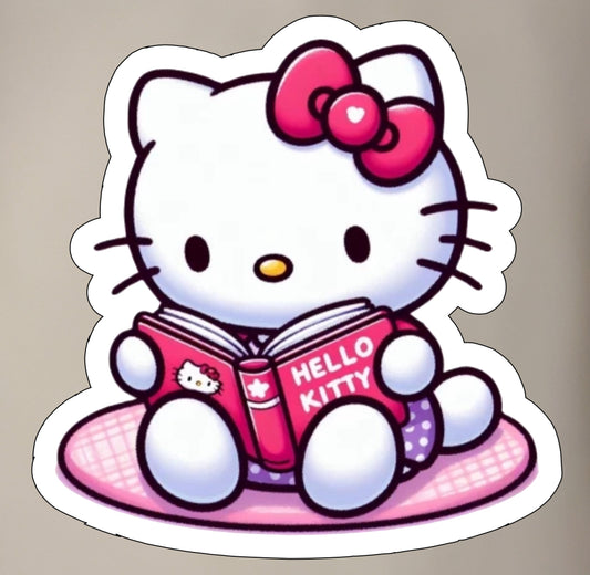 Hello Kitty Cat reader, Kawaii Cute Adorable Glossy Vinyl sticker, Decal