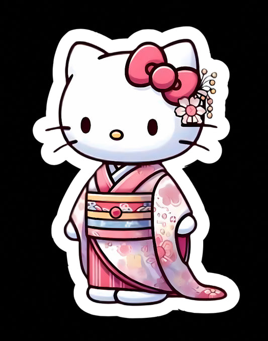 Hello Kitty Cat, Kawaii Cute Japanese Kimono Glossy Vinyl sticker, Decal