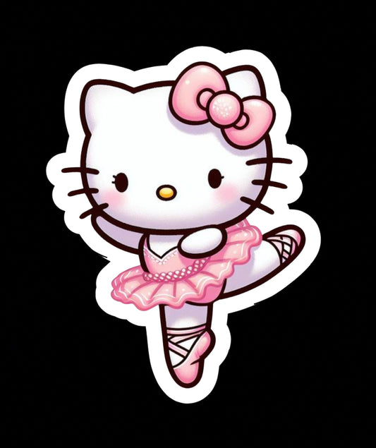 Hello Kitty Cat ballet dancer, Kawaii Cute Adorable Glossy Vinyl sticker, Decal
