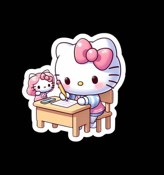 Hello Kitty School Cat, Kawaii Cute Learning, Study Glossy Vinyl sticker, Decal