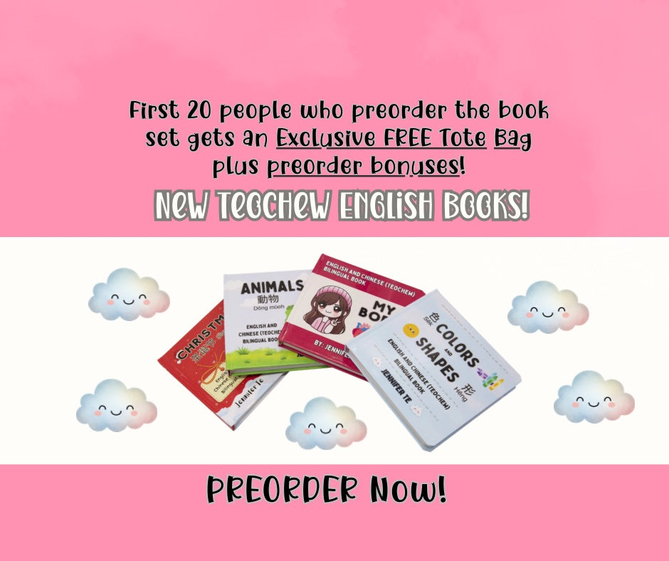 4 Hardcover Book Set - Christmas, My Body, Animals, Colors and Shapes (English and Teochew)